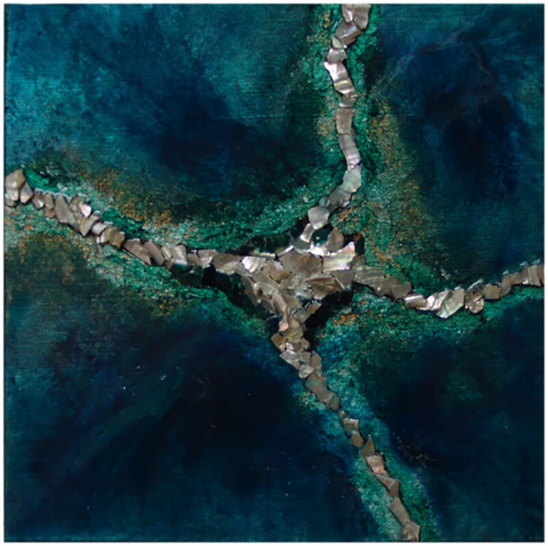 A l’origine, je peignais uniquement à l’acrylique réalisant de l’abstrait, du figuratif. Ce choix de l’acrylique m’a permis d’évoluer vers des techniques mixtes avec l’incrustation de matériaux divers.