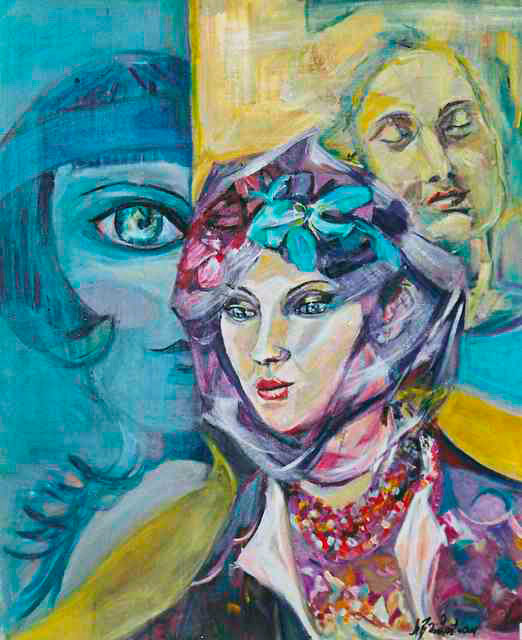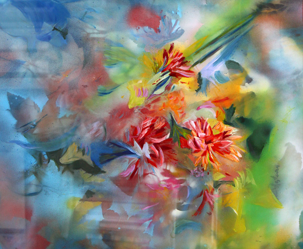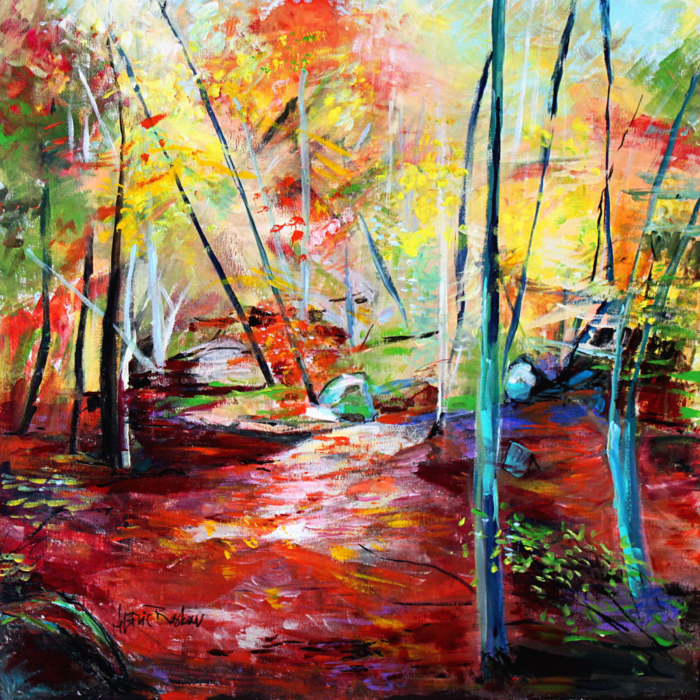 Après avoir travaillé la peinture à l’huile en figuratif, je suis passée à l’acrylique depuis une vingtaine d’années, tout en explorant par épisodes le travail sur rhodoïd à la bombe. Cela m’a permis de découvrir et de donner forme à des œuvres auxquelles je ne m’attendais pas initialement.