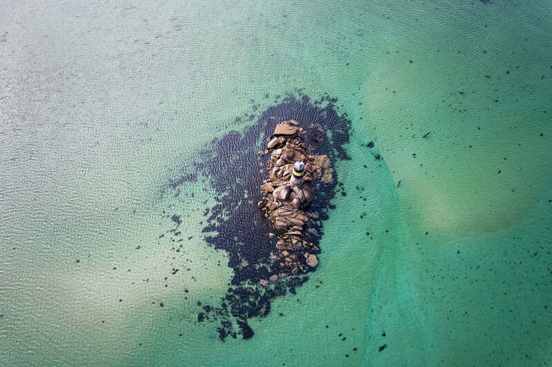 Également télépilote, mon drone me permet de prendre de la hauteur et de découvrir de nouveaux paysages et perspectives époustouflantes, révélant des détails et des beautés cachées, souvent inaccessibles autrement. C’est ainsi que j’ai réalisé mon exposition «Île-Grande vue du ciel».
