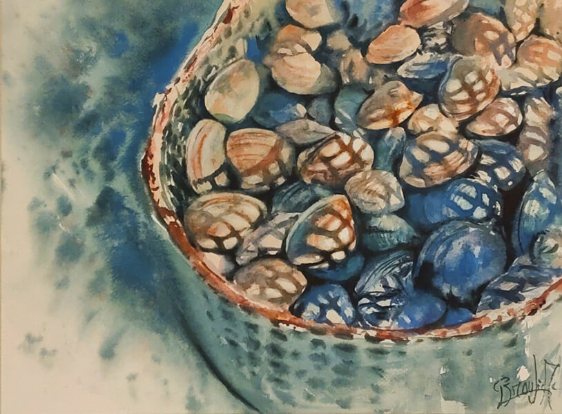 Mes premières aquarelles avaient pour thème les natures mortes. Par mon métier de cuisinier, je suis toujours captivé par la beauté des fruits et légumes. Jean Siméon CHARDIN, Grand Maître de la peinture à l’huile a été mon inspiration par la composition de ses tableaux, le réalisme à brosser les mets et vaisselles sur fonds sombres.