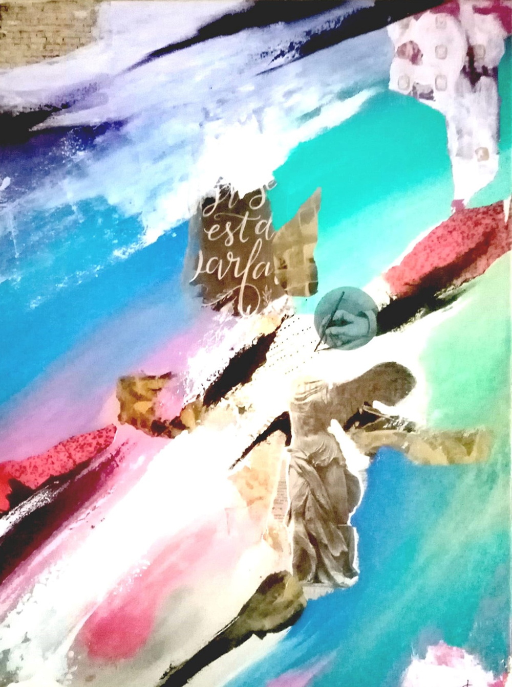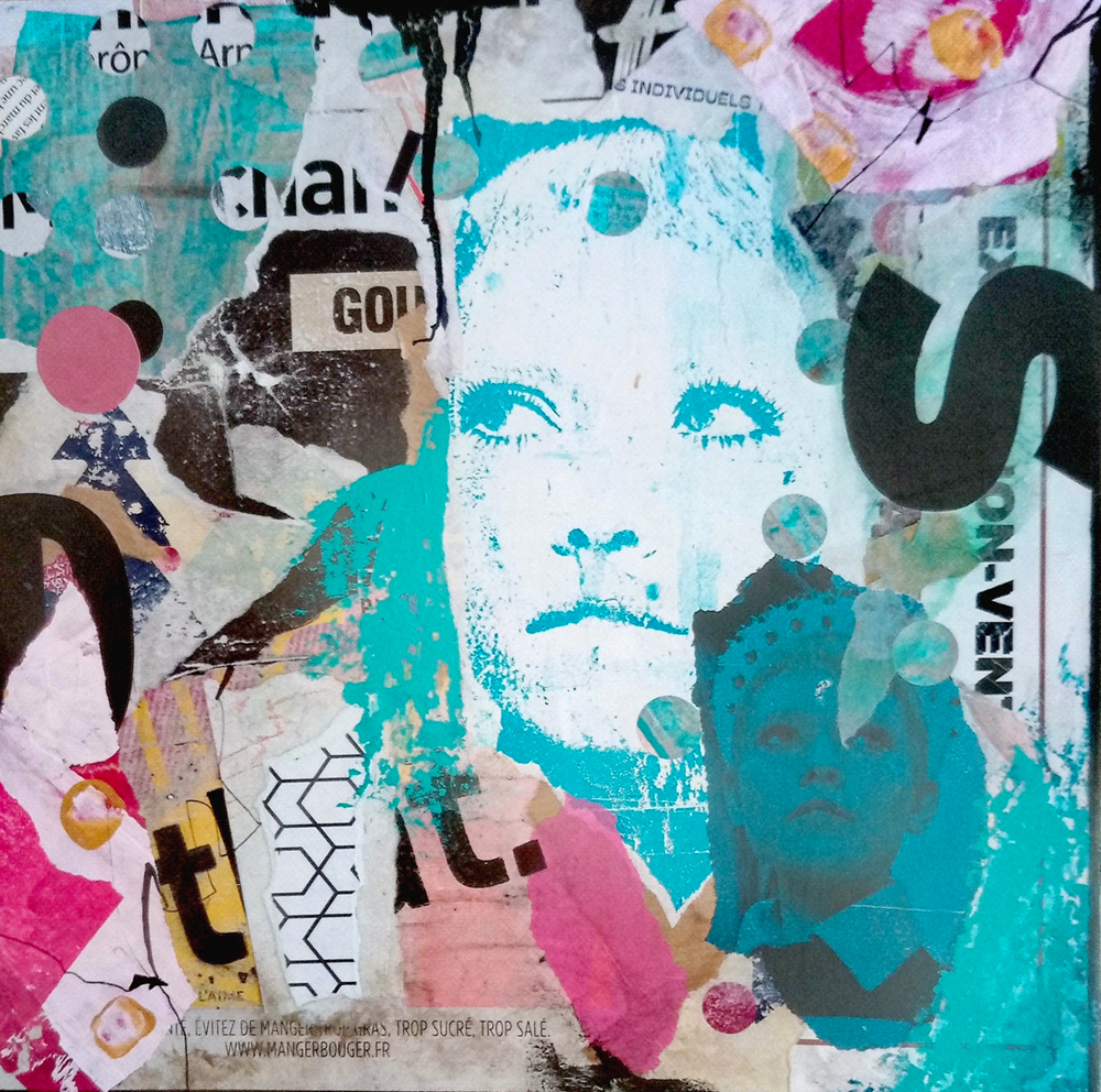 Techniques : Collage et techniques mixtes (acrylique, encre, pastel….)